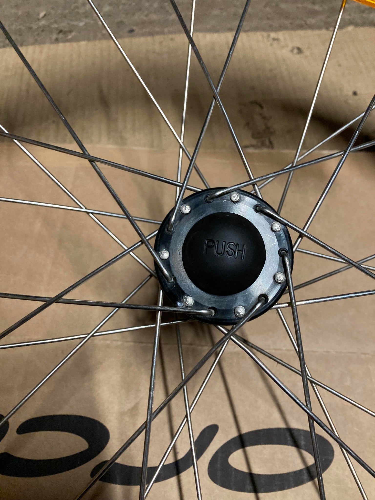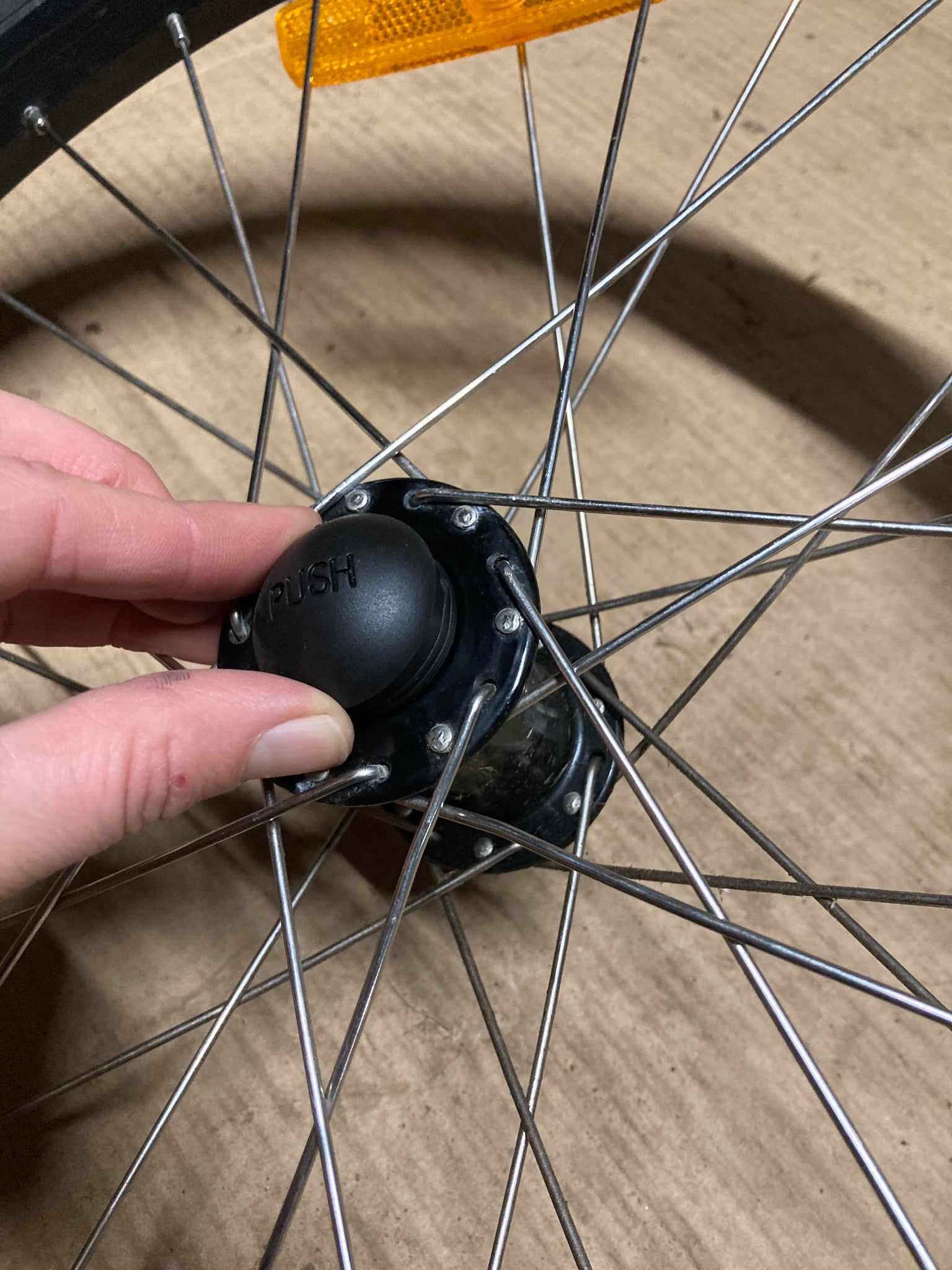 Yellow replacement rubber dust cap for push button wheels. Compatible with: