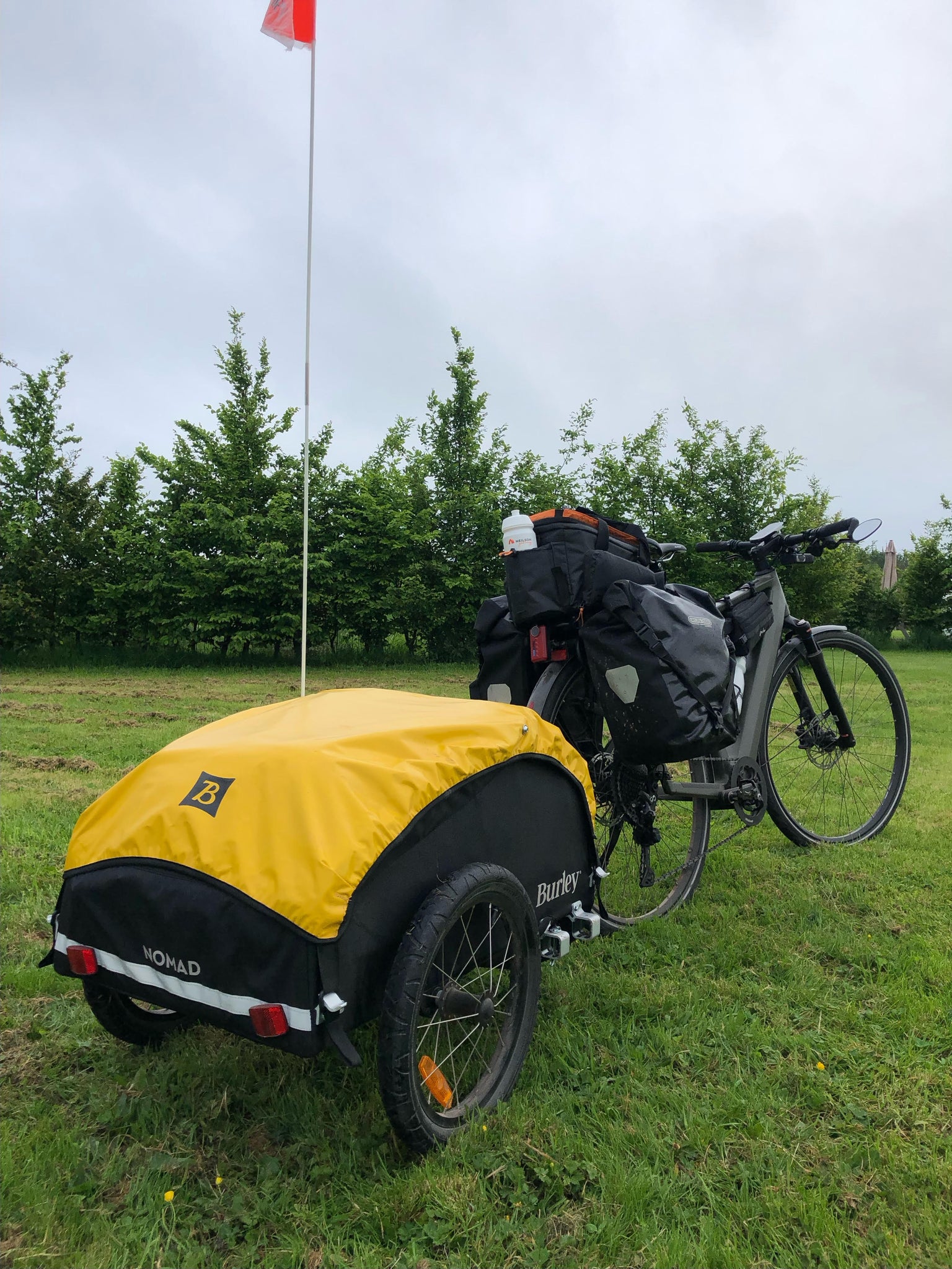 Built specifically for touring, the Nomad bike cargo trailer features an efficient, lightweight design, huge cargo capacity and durable weatherproof cover. The trailer’s balance point minimizes torque on the bike while the two wheel chassis provides superior tracking and stability. Weighing in at less than 17 lbs., the Nomad can carry up to 100 lbs. of cargo, and the weatherproof cover keeps your gear protected from the elements. Embrace your wanderlust with the Burley Nomad.
