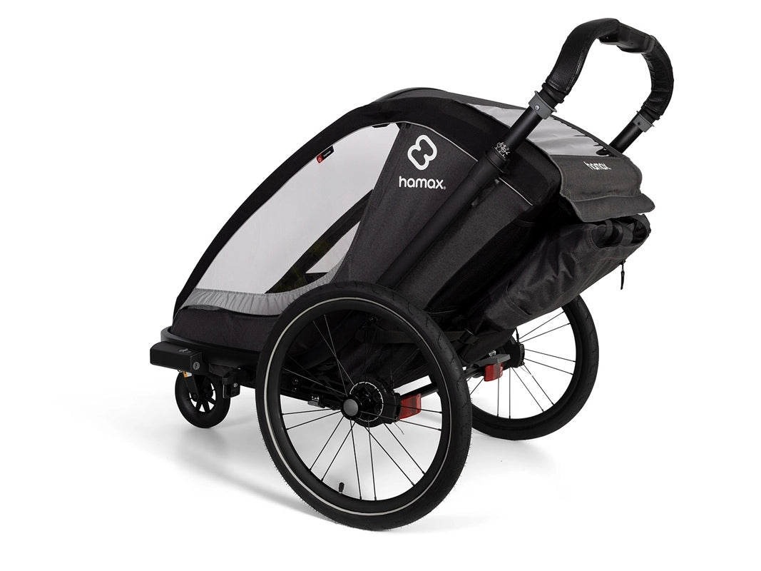 The Hamax Cocoon displays urban elegance and versatility, as it can be used both as bicycle trailer, stroller and jogger. Smart technical solutions demonstrate excellence in user friendliness, safety and comfort.