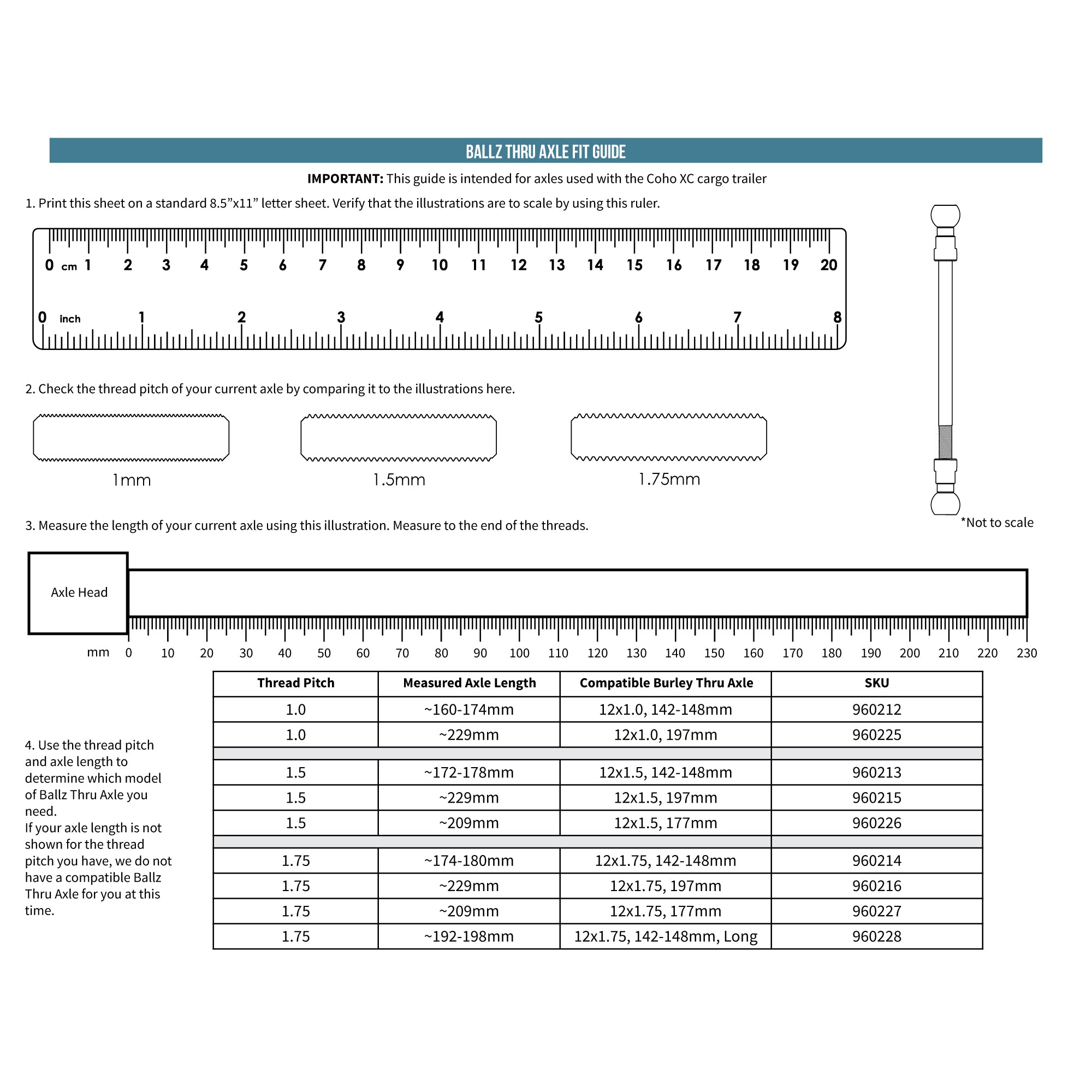 Available sizes of the Ballz Thru Axle are compatible with the following axle sizes. The thru axle is slightly longer so that it can stick out on the right side of the frame to attach the Ballz hitch mount.