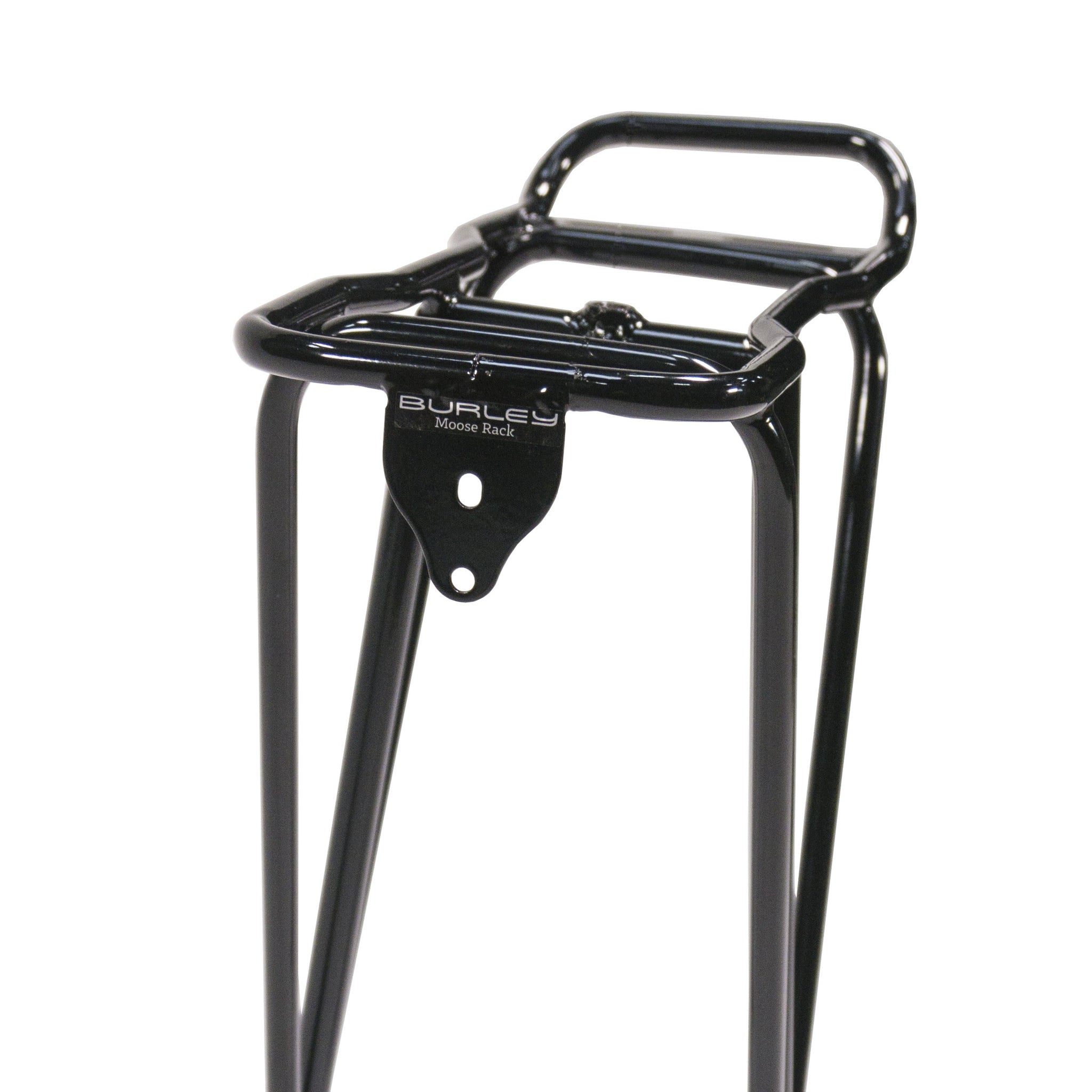 A heavy-duty steel rear rack made for towing Burley trailercycles. Every new Piccolo and Kazoo trailercycle comes with a rack. Get an extra to enable use on another bike. Moose Rack includes the rack stays and hardware to mount to your bicycle.