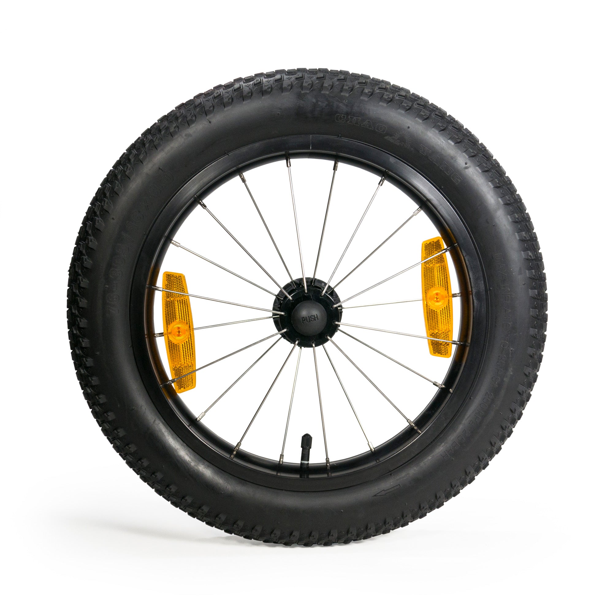 This wide knobby tire enables travel over snow, sand and gravel. The Kit includes two 16×3” push button wheels that are wider and more rugged, offering superior handling on unpaved surfaces. Now, nothing can stop your Burley from coming along for the ride. A wide range of acceptable tire pressures let you adjust the stiffness to your liking. Let a little air out and the tires soak up the bumps for your passengers. Constructed with aluminum rim/hub and stainless steel spokes.