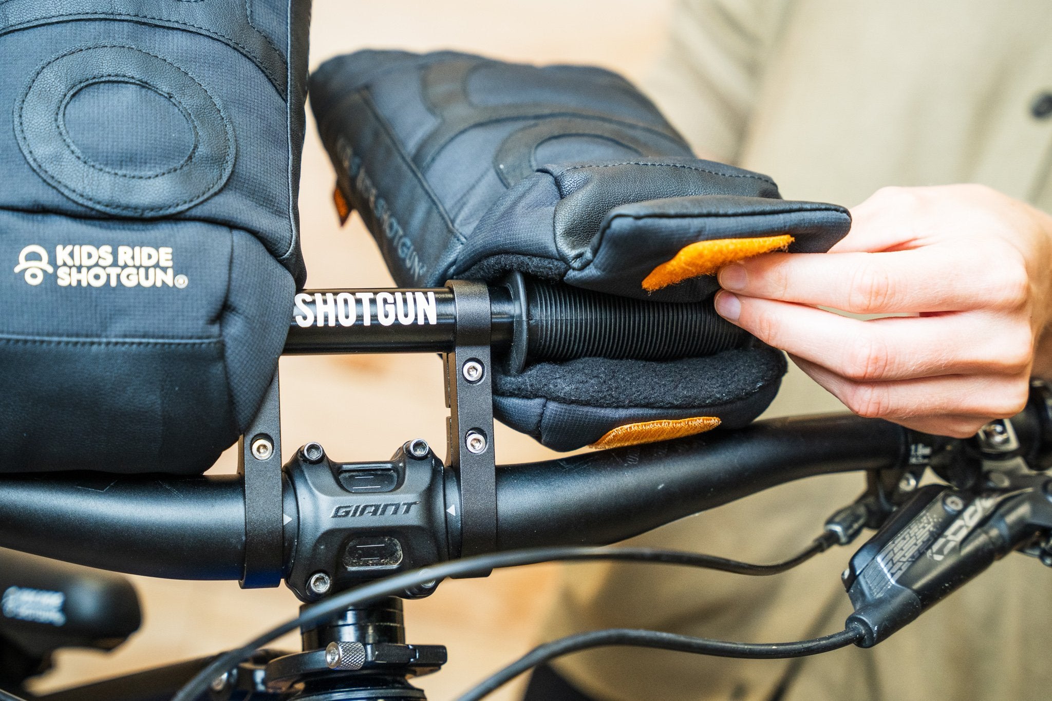 Keep little hands warm, and extend your time on the trail. Our children’s pogies are designed for use with all Shotgun seat and handlebar products, and are made for winter rides, cold mornings – or even snow!
